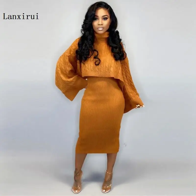 Sexy Two Piece Set Mini Skirt Outfits Crop Top Flare Sleeve Sweater Dress Women Jumper Suit Rib Winter Orange Blazer Knitted Pcs Dress Sets Aliexpress